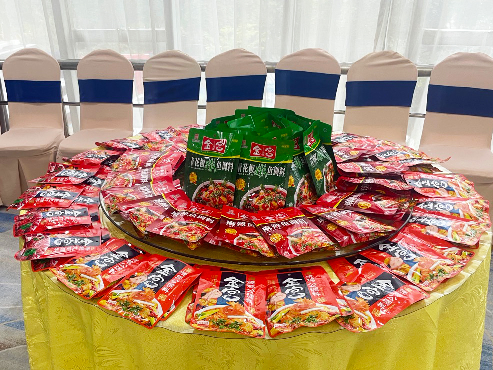 活動現(xiàn)場設(shè)有產(chǎn)品展示與推介專區(qū),金宮熱銷產(chǎn)品“特級雞精454克”強勢登場,香味濃郁、提鮮持久,深受在場客戶青睞。同時,金宮還帶來了多款新品,包括“新香辣系列調(diào)味料”“濃縮牛油火鍋底料”“青花椒嫩魚底料”等,讓客戶在試吃中充分感受金宮在產(chǎn)品創(chuàng)新方面的持續(xù)突破與品質(zhì)堅守。